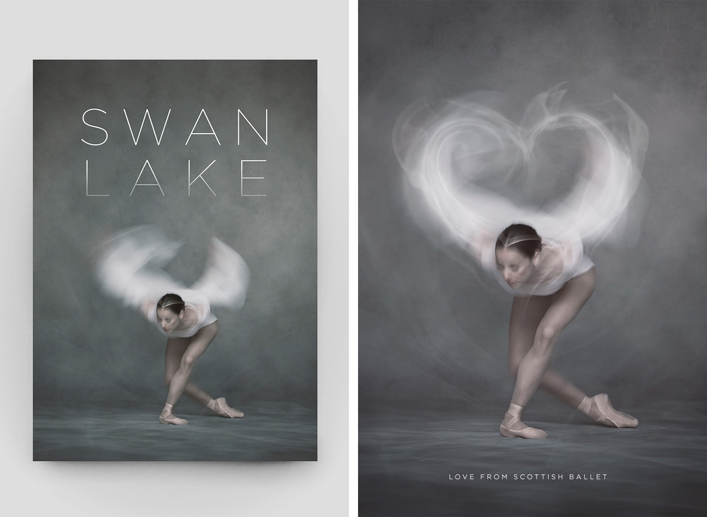World-renowned photographer David Eustace was commissioned to create these beautiful long-exposure photographs of dancer Sophie Martin. I did post-production clean up and colour on these images and then designed the accompanying production brand.